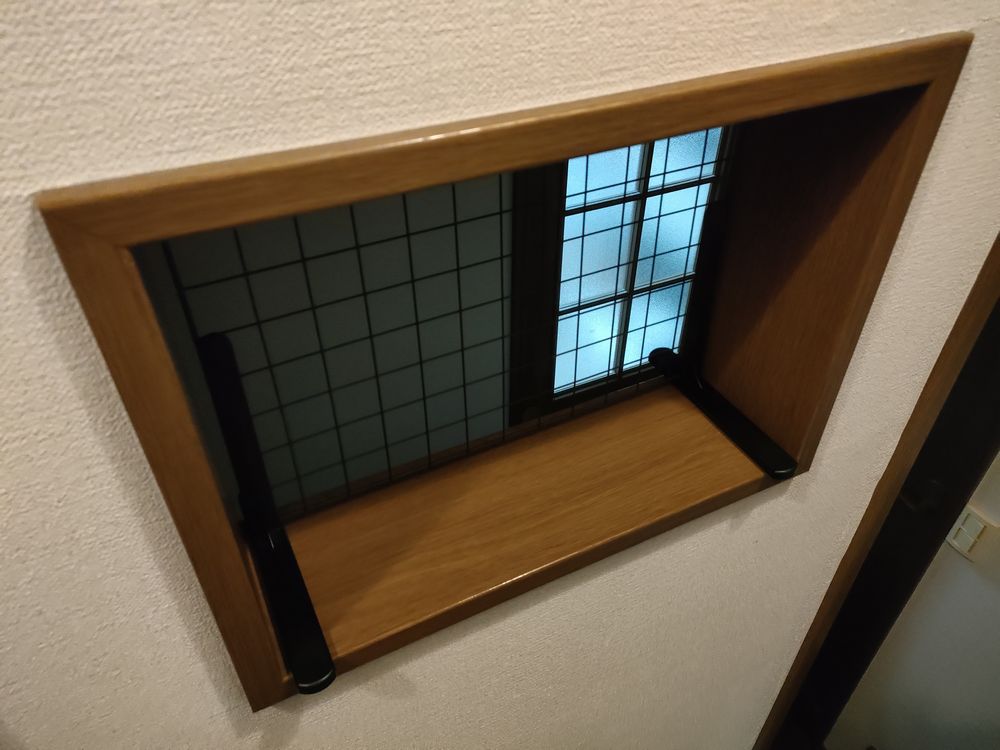 小窓からココに乗って飛び降りたら階段一番下まで落下なので