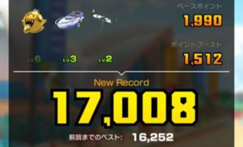 前半で無理してしまい、 後半戦は、リーグダウンの予感がします ニンニンドージョー X 今回はマシンがありません… 3DS ネオクッパシティ X 初のLv7は、ここで使えるクッパJr. 更新は、ほねクッパで、使ってないですけどー RMX レインボーロード 2X 初日1位に…